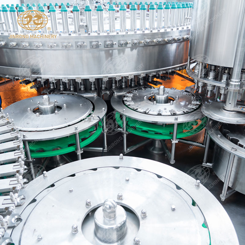 3. 灌裝:在接下來的工作站,經過定量灌裝設備,將碳酸飲料按照預設的容量精確地灌裝入瓶子中。灌裝設備通常采用重力式下料或者壓力式下料,保證了灌裝的準確性和穩定性。