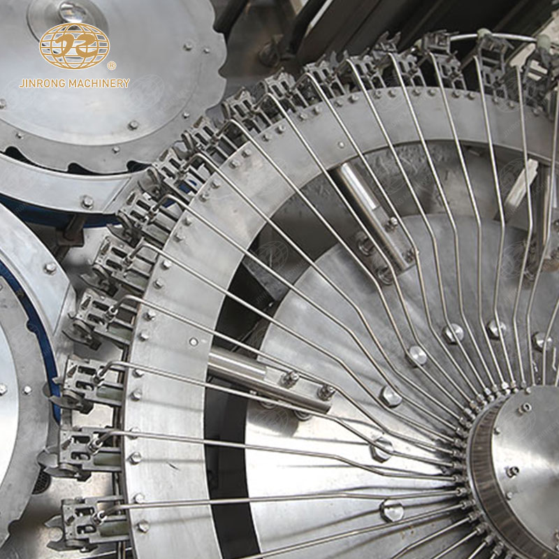 瓶洗凈系統(tǒng)是為了確保灌裝的水瓶在衛(wèi)生條件下運(yùn)輸和存儲(chǔ)。該系統(tǒng)會(huì)先對(duì)瓶體進(jìn)行外表清洗,然后送入高壓噴洗區(qū),利用噴嘴對(duì)內(nèi)部進(jìn)行高壓清洗,同時(shí)還有漂洗、消毒等步驟,最終保證瓶子的潔凈度和無(wú)菌性。
