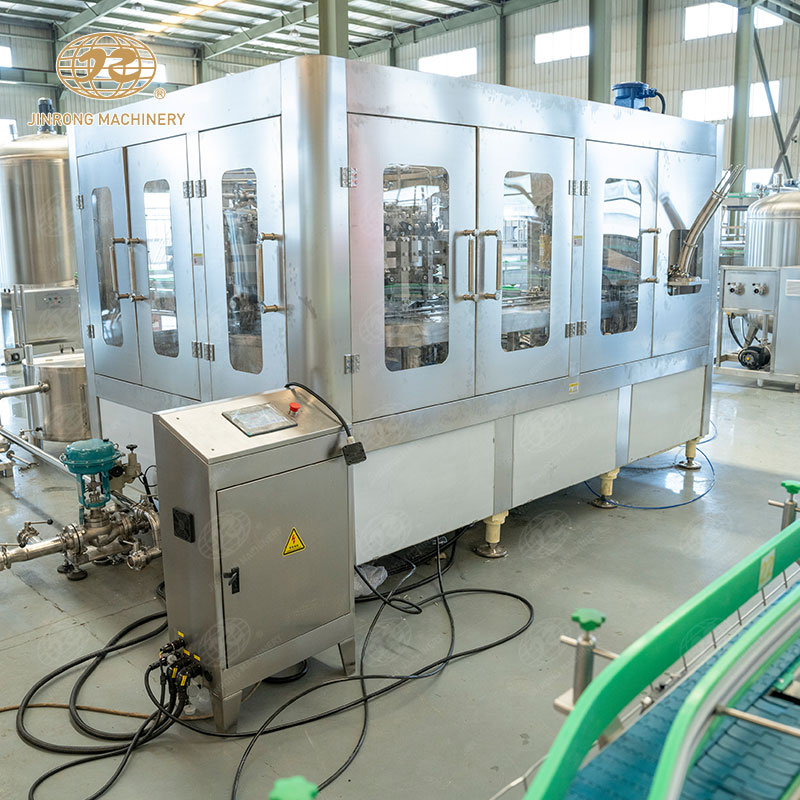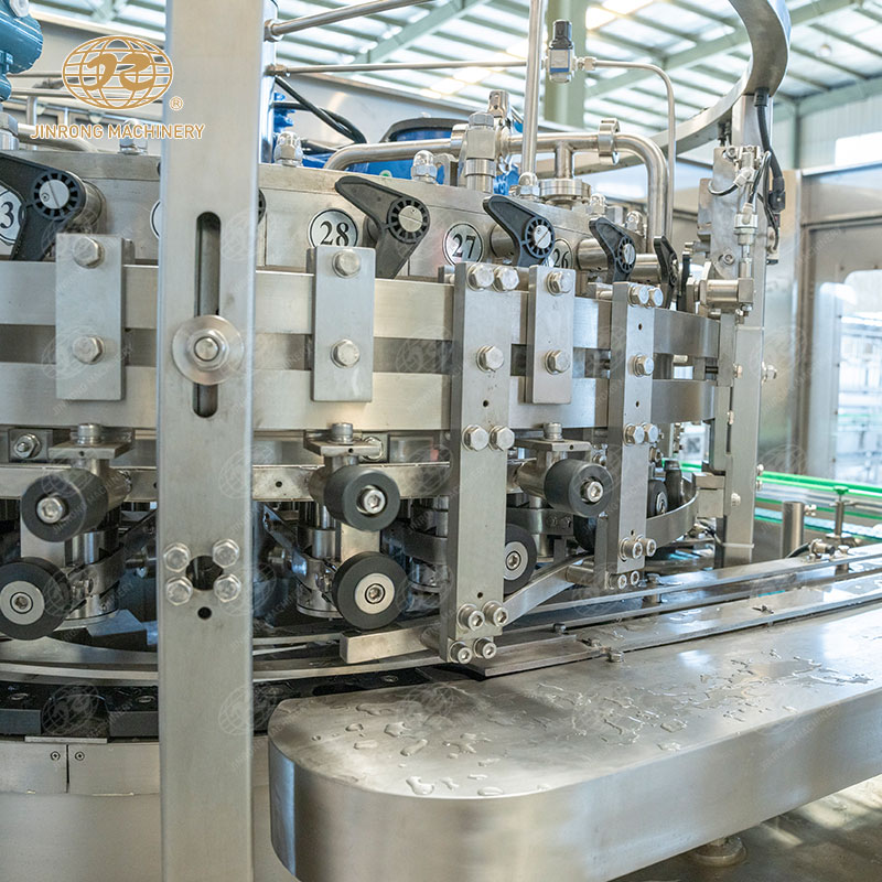 4. 易拉罐灌裝機:是生產線的核心設備之一,根據飲料的特性分為等壓灌裝機、常壓灌裝機和熱灌裝機等。
