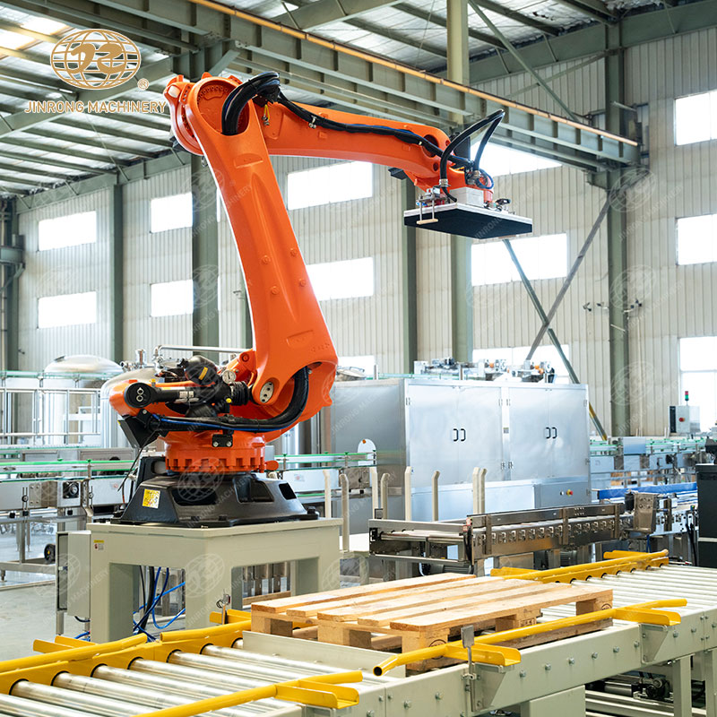 14. 碼垛機:將膜包好的易拉罐按照一定的排列方式堆碼成垛,以便于叉車等搬運設備進行搬運和存儲,提高物流效率。